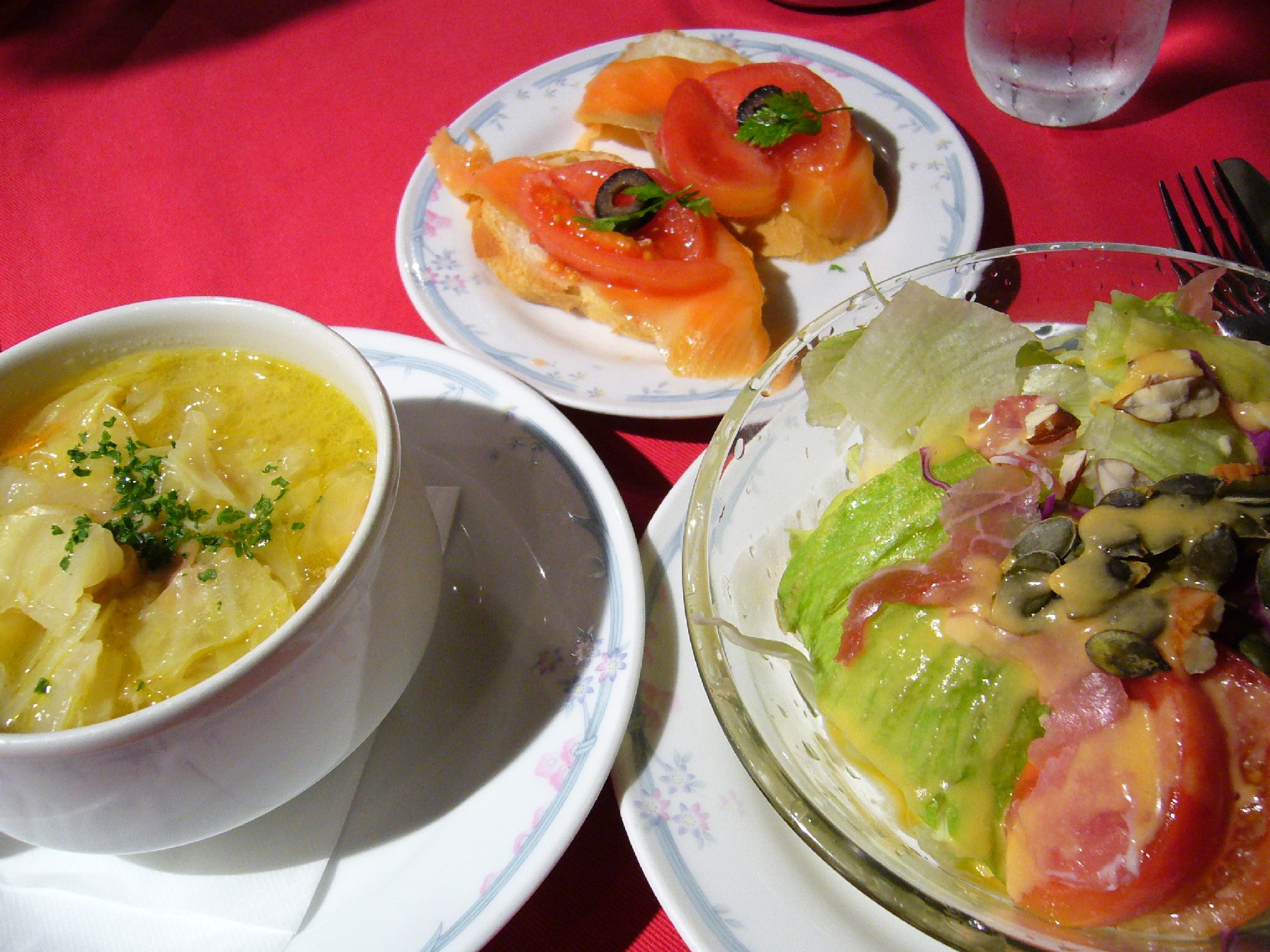 (ボルシチ・グリビーヴスミターニェ・ミニサラダ・自家製ライ麦パン)