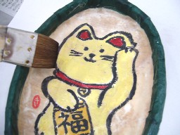 ステンシルという新たな技法を学びました。カッターで図柄や文字を切り抜くんだけど、これがねぇ。。。。