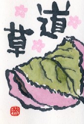 月1の絵手紙教室の日。お題は「ひなまつり」とか「桜餅」とか。らんらんねー、桜餅大キライなの (≧ヘ≦ )プイッ!! あの葉っぱどーにかしてー!やめてー!