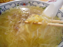 シンプルだけど、これがまいうー。見た目わからないけど、底の方に刻みチャーシューがいっぱい沈んでるのよん。ネギと絡んで絶妙〜