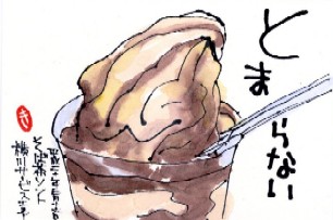 これ、黒蜜かかってるんだけど、色薄すぎました。これじゃーチョコレートソースだす。ミックスソフトになっちゃってるよ〜。黒蜜はもっと色が深いんだよ〜。