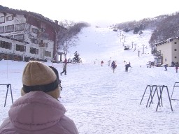 雪は降ってるけど、まずまずの天気。体調も回復。宿の裏の西館山からスタート(←写真)。なぜかどこもかしこもスキースクールの中学生ばっか。1月は多いのかなぁ〜。びっくりするくらいの大群でしたの。あとは全体的にどこも空いてました。めずらしい。
