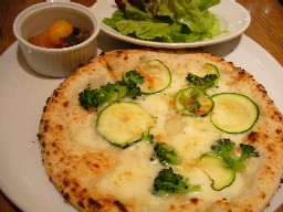 今日いただいたのはズッキーニとブロッコリーのピザ。見た目もいい感じ。