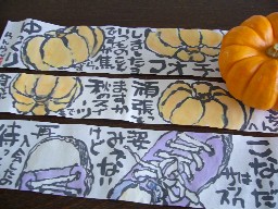 昨日は月1の絵手紙教室の日。「巻紙に描く」のがお題。
