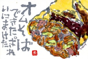 タマゴでくるんで、オムそばにもしてみたよん。きれいに巻けたぜぃ