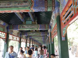 昆明湖ほとりのこの長廊。梁に絵が描かれてます。