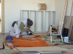 DENのガラス壁を取り除いた場所の補修。