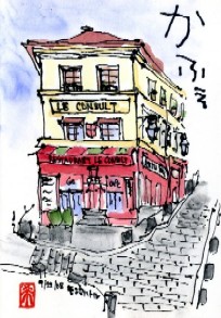 この絵手紙、コーヒーをカナにするか、